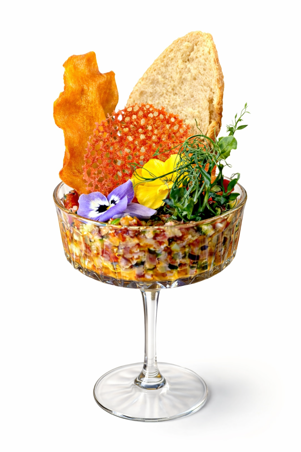 Pomidor suszony, ogórek, czerwona cebula, szczypiorek, sriracha, pieczywo
